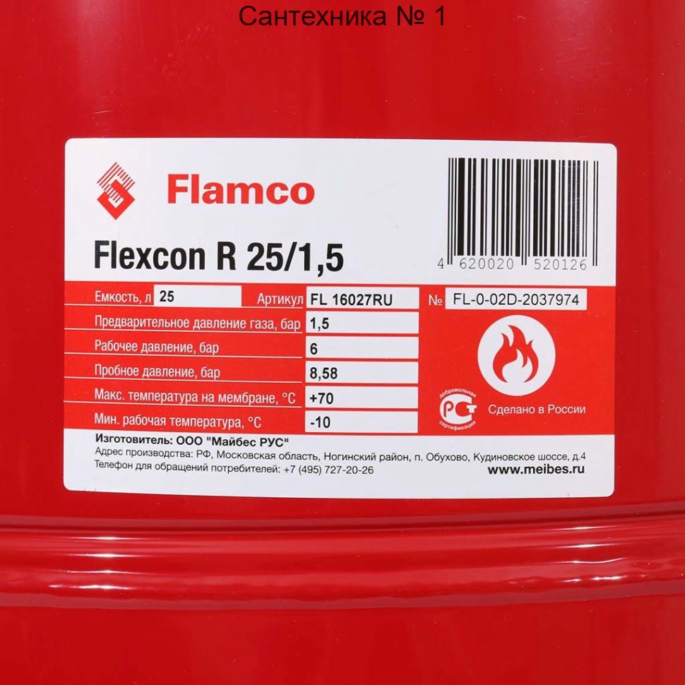 Мембранный расширительный бак Flamco Flexcon R 25 предназначен для компенсации температурных расширений теплоносителя и поддержания давления в системе отопления или холодоснабжения.