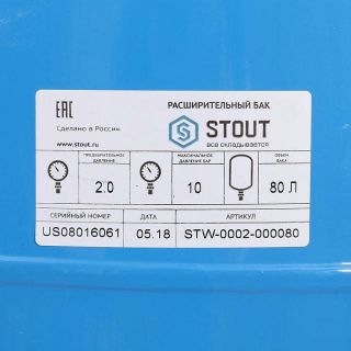 Бак расширительный для водоснабжения 80 л STOUT предназначен для поддержания постоянного давления в системах индивидуального и промышленного водоснабжения, компенсации гидроударов при изменении давления и накапливания воды. Преимущества гидроаккумуляторов STOUT: низкие расходы при эксплуатации; легкий монтаж; безопасность; надежность; установка в любой части дома; отсутствие потери рабочей среды; минимальные теплопотери за счет отсутствия испарения; минимальная подача воздуха; мембраны из натуральной резины и бутила могут применяться в питьевом водоснабжении; возможно использовать различные виды теплоносителя.