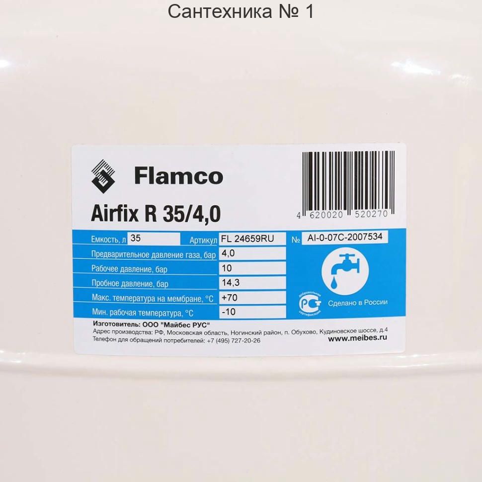 Бак гидроаккумулятор Flamco Airfix R 35 предназначен для использования в качестве гидроаккумулятора в системах холодного и горячего водоснабжения, для их защиты от температурного расширения.