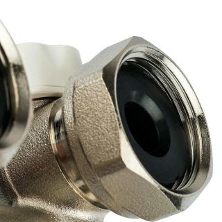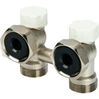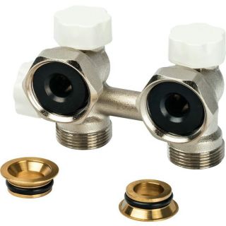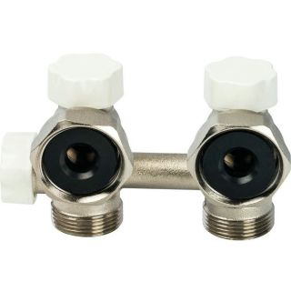 M 174 - распределители для однотрубных и двухтрубных систем медных и пластиковых труб, с двойным уплотнением. Напольное подсоединение типа евроконус G3/4. Угловой блок.