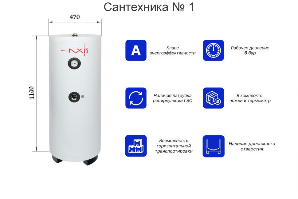 Водонагреватель косвенного нагрева AXIS THERM X со встроенным теплообменником из нержавеющей стали и возможностью дополнительной установки электрического нагревательного элемента является универсальным оборудованием для загородного дома или коттеджа.