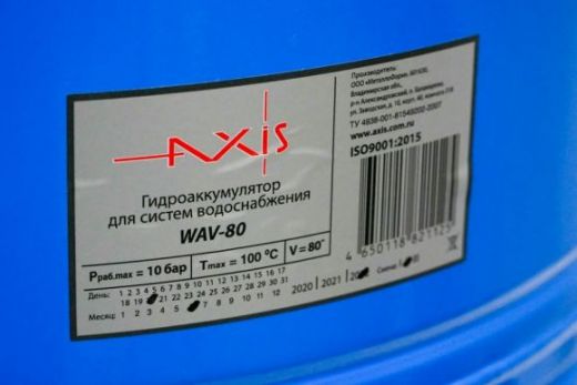 Гидроаккумулятор WAV AXIS предназначен для поддержания рабочего давления в системе водоснабжения, предотвращения разрушения системы от гидравлического удара, уменьшения количества включений-выключений насоса и компенсации температурного расширения воды в системе ГВС.