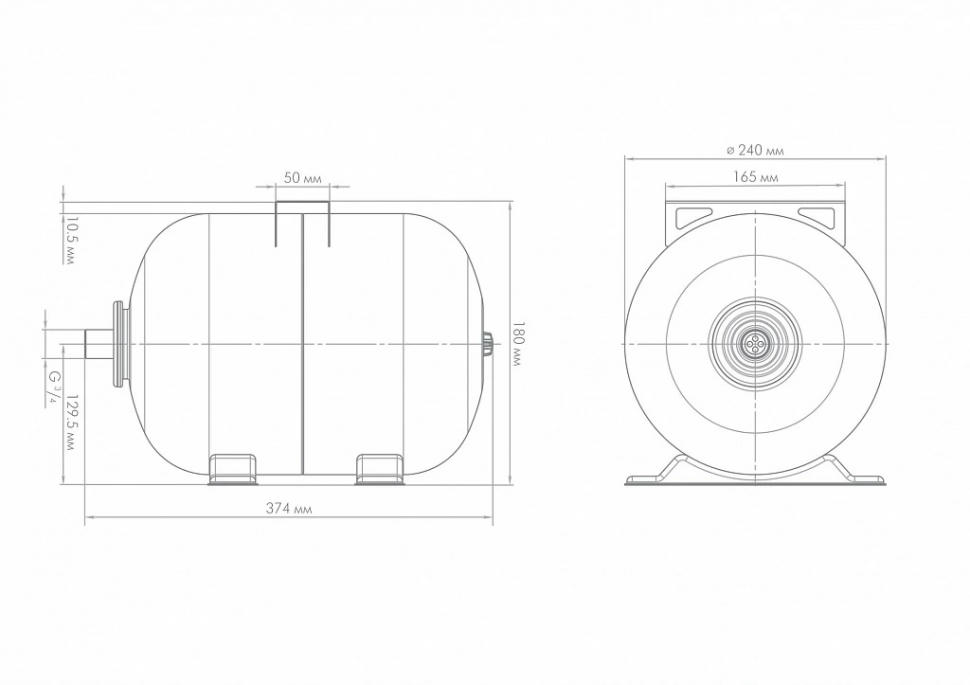 Гидроаккумулятор предохраняет насос от частого включения, что способствует увеличению ресурса насоса. Снижает вероятность появления гидроудара в системе. При отключении напряжения в сети выдает накопленный запас воды. Корпус из высококачественной стали. Комбинированный завальцованный фланец. Краска с защитой от ультрафиолетовых лучей. Воздушный клапан для контроля давления воздуха. Универсальная площадка для крепления насоса. Горизонтальная компоновка.