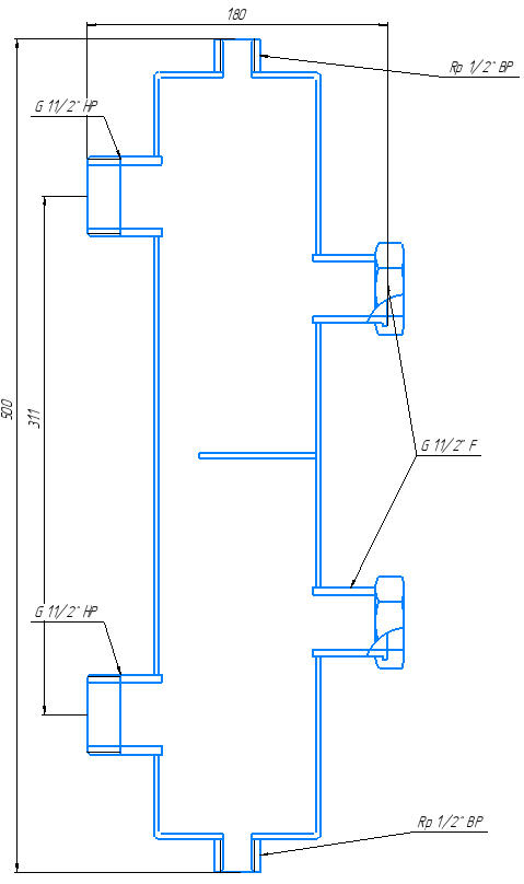 Гидрострелка (гидроразделитель) Warme WGR122GB с накидными гайками на 1 1/2" применяется в системах отопления мощностью до 122 кВт. Устанавливается в систему отопления площади до 1200 кв. м. Повышает долговечность и надежность котельного оборудования за счет стабильной работы системы.