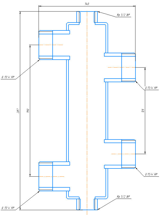 Гидрострелка WGR60B с резьбой и торцевыми отводами под воздушный клапан и грязевик Warme