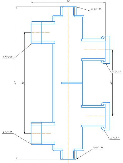 Гидрострелка WGR60GB с накидными гайками и торцевыми отводами под воздушный клапан и грязевик Warme