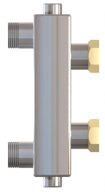 Гидрострелка WGR60SF из нержавеющей стали с накидными гайками, торцевыми отводами под воздушный клапан и грязевик Warme