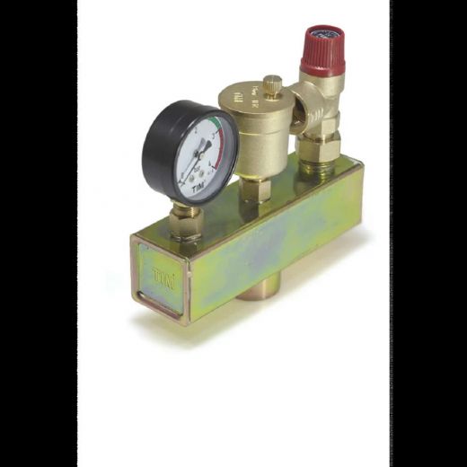 Комплектная группа безопасности JH1022 применяется в закрытых системах водяного отопления мощностью до 50 кВт и представляют собой комбинацию предохранительного клапана, автоматического воздухоотводчика с запорным клапаном и манометра, смонтированных на консоли.