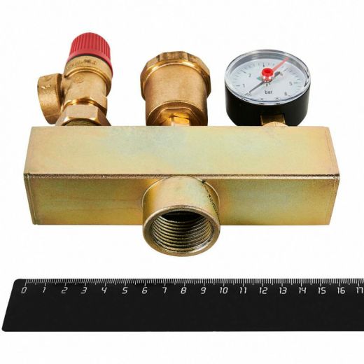 Оцените товар «Группа безопасности котла 3 бар, 1" до 50 кВт, без теплоизоляции ROMMER»