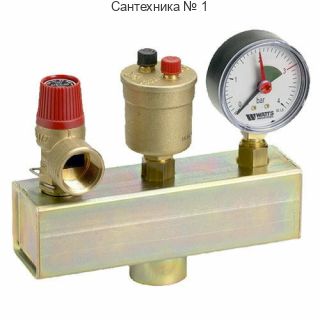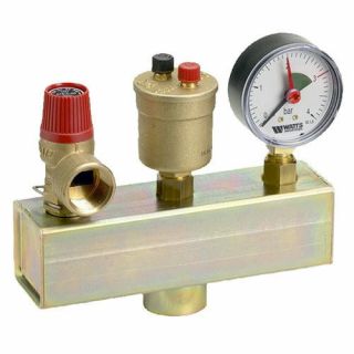 Группа безопасности котла KSG 30/E применяется в закрытых системах водяного отопления мощностью до 50 кВт. В комплект входят предохранительный клапан, автоматический воздухоотводчик с запорным клапаном и манометр, смонтированные на консоли. Группа безопасности защищает от превышения давления в системе, выполняет функцию отвода воздуха и газов, а также отображает информацию по давлению в системе на уровне манометра.