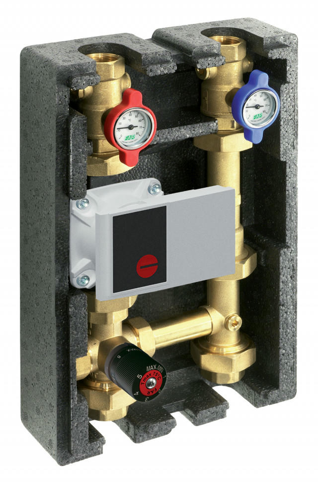 Оцените товар «Группа быстрого монтажа 1" с термосмесителем в теплоизоляции, под насос 180 мм FAR»
