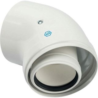 Элемент дымохода конденсационного STOUT угол 45 градусов DN60/100 м/п PP-FE SCA-8610-000045 предназначен для формирования изгибов коаксиальной трубы. С одной стороны оснащен муфтой, с другой - патрубком, вставляемым в муфту соседнего элемента. Материалом для изготовления внутренней трубы служит полипропилен, для наружной использована оцинкованная сталь.
