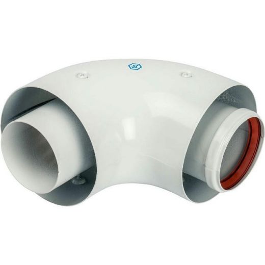 Элемент дымохода отвод коаксиальный 90° 60/100, п/м уплотнения и хомут в комплекте STOUT