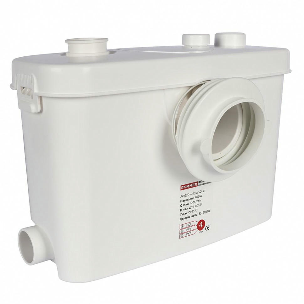 Канализационная насосная установка ROMMER BIOLIFT R-4 ? предназначена для перекачивания бытовых сточных вод, в которых допускается содержание фекалий, туалетнойсбумаги, а также стандартных жидкостей для очистки бытовых приборов. Данная модель используется для перекачивания сточных вод от унитазов, писсуаров, биде, умывальников, душевых кабин, которые находятся ниже уровня коллектора канализационной системы, а также в удаленных местах, где невозможно или нецелесообразно организовать канализацию самотеком.