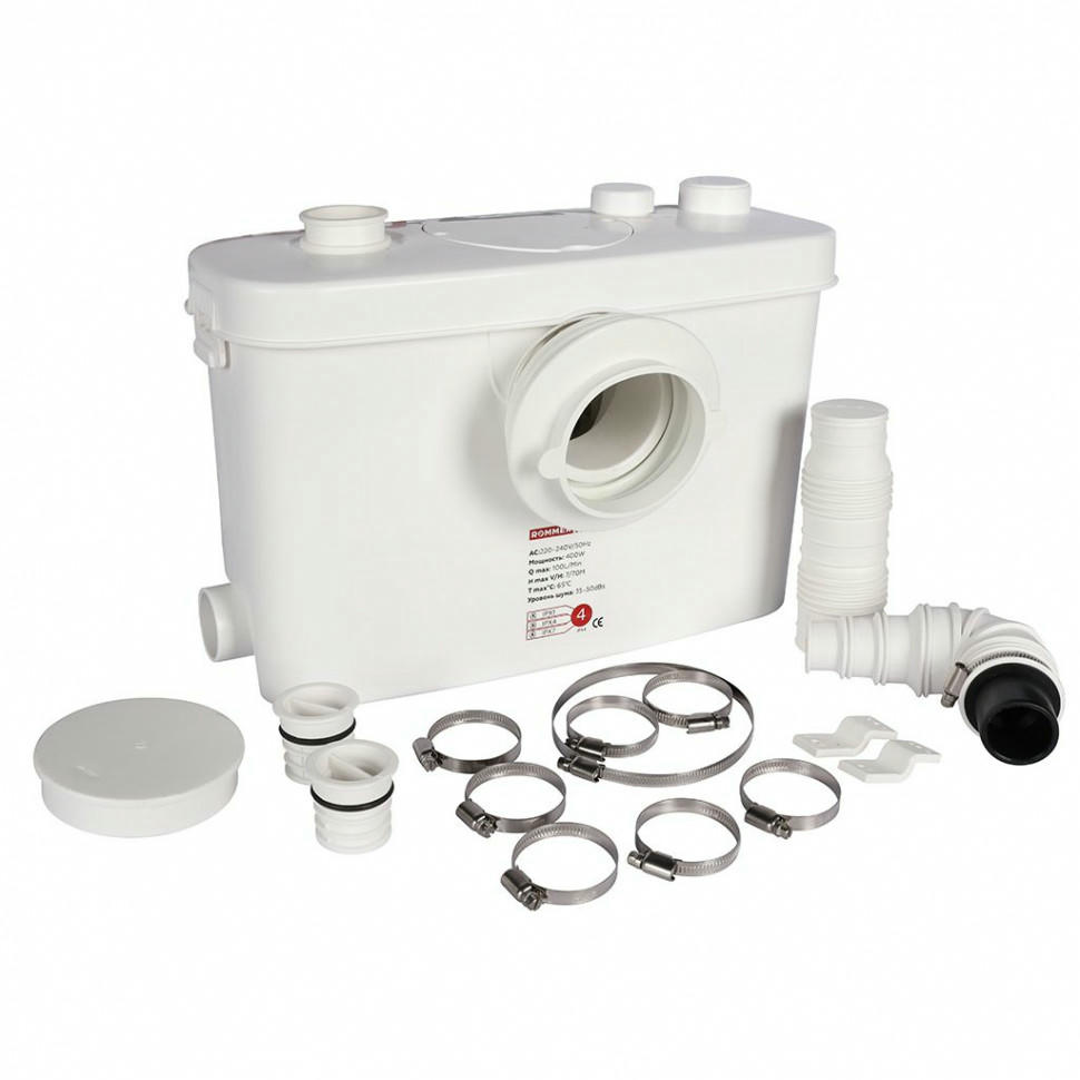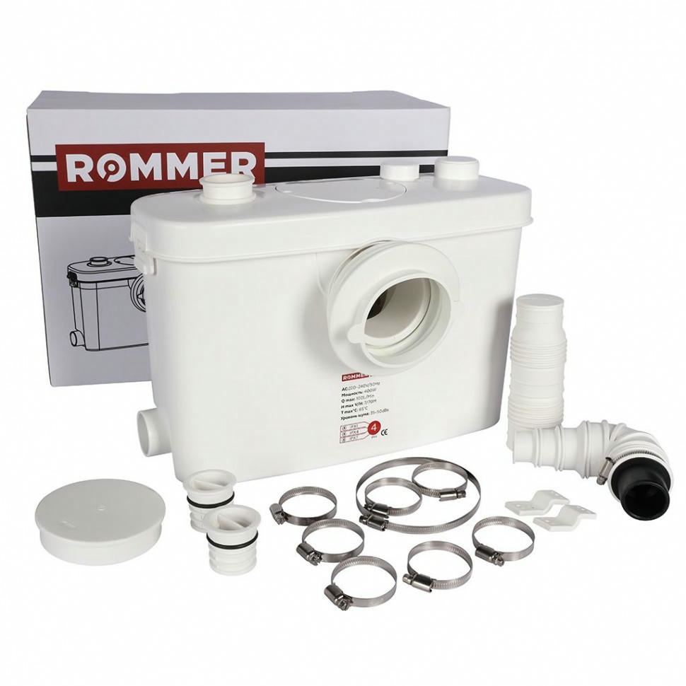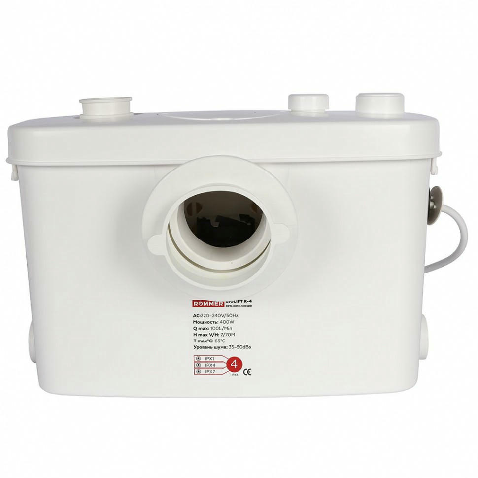 Канализационная насосная установка ROMMER BIOLIFT R-4 ? предназначена для перекачивания бытовых сточных вод, в которых допускается содержание фекалий, туалетнойсбумаги, а также стандартных жидкостей для очистки бытовых приборов. Данная модель используется для перекачивания сточных вод от унитазов, писсуаров, биде, умывальников, душевых кабин, которые находятся ниже уровня коллектора канализационной системы, а также в удаленных местах, где невозможно или нецелесообразно организовать канализацию самотеком.
