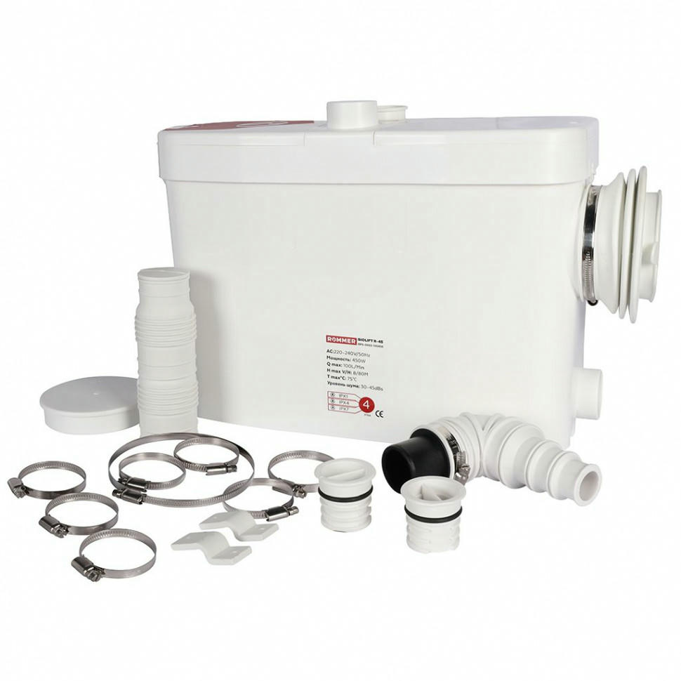 Канализационная насосная установка ROMMER BIOLIFT R-4S ? предназначена для перекачивания бытовых сточных вод, в которых допускается содержание фекалий, туалетной бумаги, а также стандартных жидкостей для очистки бытовых приборов. Данная модель используется для перекачивания сточных вод от унитазов, писсуаров, биде, умывальников, душевых кабин, кондиционеров, которые находятся ниже уровня коллектора канализационной системы, а также в удаленных местах, где невозможно или нецелесообразно организовать канализацию самотеком