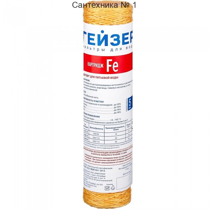 Картридж ОБЕЗЖЕЛЕЮЩИЙ ниточный Fe-10SL ГЕЙЗЕР 28123