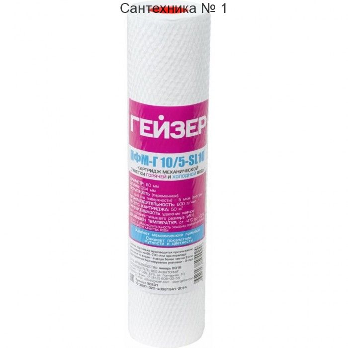 Картридж для гор. воды (ватный) ПФМ-Г 10/5-10SL (50/1шт) ГЕЙЗЕР 28231
