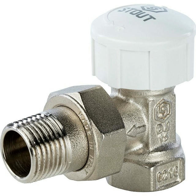 Клапан термостатический STOUT 1/2" угловой SVT 0002 000015 - составной элемент радиаторного терморегулятора STOUT. Клапан имеет устройство для предварительной настройки его гидравлического сопротивления (ограничения максимальной пропускной способности) и применяется в двухтрубных системах водяного отопления.