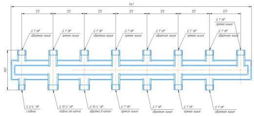 Коллектор WKS80 на 6 контуров 4+2, компакт Warme