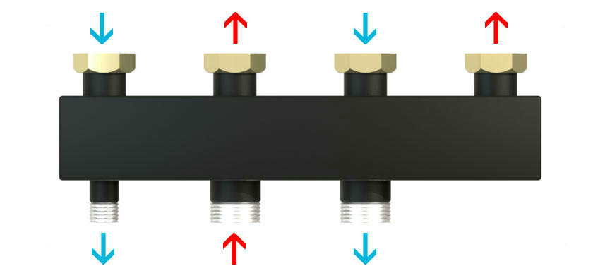 Настенный распределительный коллектор WKS85.2F на 2 контура с разделением подающей и обратной линий. Эксплуатация коллектора требует обязательного применения насосных групп Maske на контурах теплого пола/бойлера или радиаторного отопления. Применение насосных групп сокращает в 10 раз время монтажа системы обвязки котельной и обеспечивает хозяину дома или эксплутационной службе комфортное и простое управление отдельными поэтажными контурами отопления, теплых полов, бойлера и вентиляции. Предусмотрена защита насосов контуров потребителей и насоса котла от перепадов давления при отключении контуров. Для этого необходимо установить гидроразделитель (гидрострелку) Warme. Распределительный коллектор рекомендуется к установке в малоэтажных загородных частных домах.