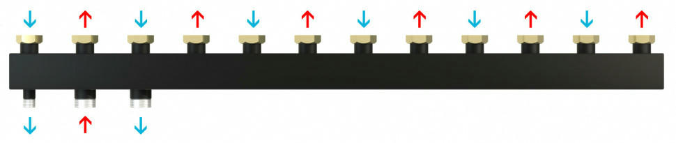 Настенный распределительный коллектор WKS85.6F на 6 контуров с разделением подающей и обратной линий. Эксплуатация коллектора требует обязательного применения насосных групп Maske на контурах теплого пола/бойлера или радиаторного отопления. Применение насосных групп сокращает в 10 раз время монтажа системы обвязки котельной и обеспечивает хозяину дома или эксплутационной службе комфортное и простое управление отдельными поэтажными контурами отопления, теплых полов, бойлера и вентиляции. Предусмотрена защита насосов контуров потребителей и насоса котла от перепадов давления при отключении контуров. Для этого необходимо установить гидроразделитель (гидрострелку) Warme. Распределительный коллектор рекомендуется к установке в малоэтажных загородных частных домах.