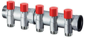 Коллекторы со встроенными запорными вентилями позволяют перекрывать поток и проводить балансировку веток отопления или холодоснабжения. Коллектор имеет кран-буксу, которая позволяет более точно задавать расход в соответствии с требуемым расчетным значением. Регулирующая ручка коллектора имеет защитный колпачок и шкалу, показывающую степень открытия клапана.