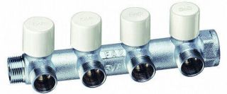 Коллектор имеет кран-буксу, которая позволяет более точно задавать расход в соответствии с требуемым расчетным значением. Регулирующая ручка коллектора имеет шкалу показывающую степень открытия клапана. Отводы FAR-М24х19 для прямого подключения труб диаметром от 14 до 20 мм: металлопластиковых труб (код 6055), для труб РЕХ (код 6052 и 6055) или для медных труб (код 8427 / 8429). Латунный коллектор FAR имеет хромированное покрытие, которое увеличивает стойкость к коррозии и минимизирует воздействия внешней среды.