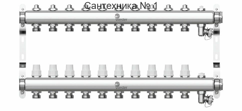 Коллектор из нержавеющей стали 1"-3/4 в сборе на 10 выходов с 2 заглушками Wester