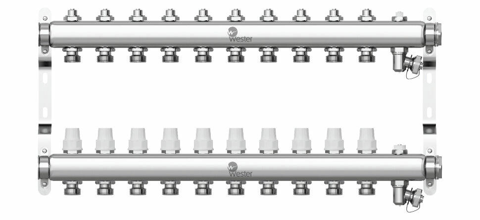 Оцените товар «Коллектор из нержавеющей стали 1"-3/4 в сборе на 10 выходов с 2 заглушками Wester»