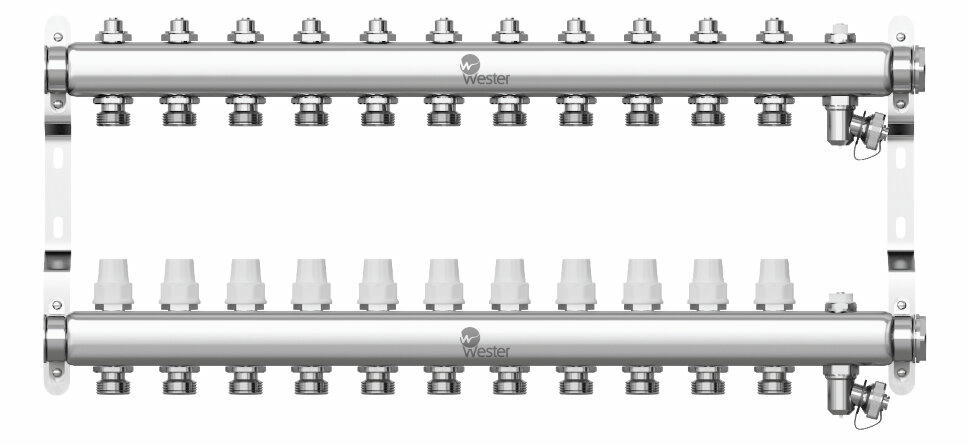 Оцените товар «Коллектор из нержавеющей стали 1"-3/4 в сборе на 11 выходов с 2 заглушками Wester»