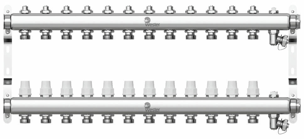Оцените товар «Коллектор из нержавеющей стали 1"-3/4 в сборе на 12 выходов с 2 заглушками Wester»