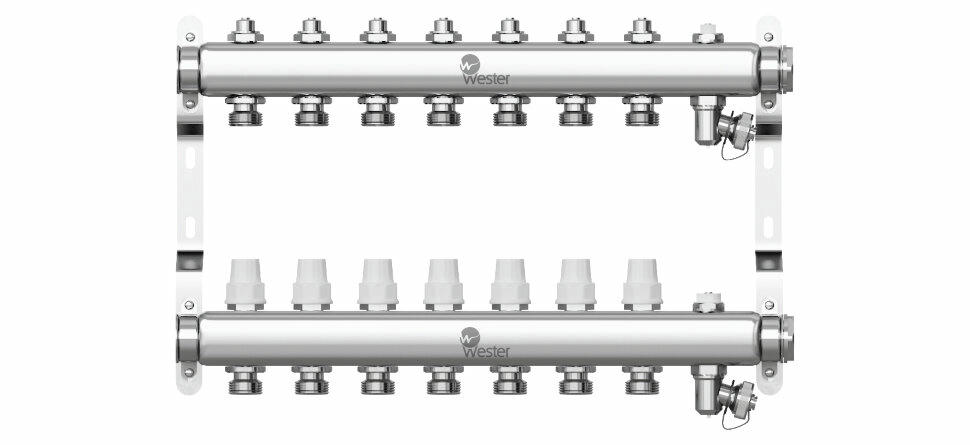 Оцените товар «Коллектор из нержавеющей стали 1"-3/4 в сборе на 7 выходов с 2 заглушками Wester»