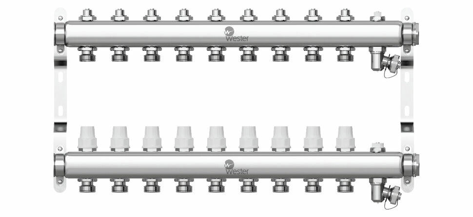 Оцените товар «Коллектор из нержавеющей стали 1"-3/4 в сборе на 9 выходов с 2 заглушками Wester»