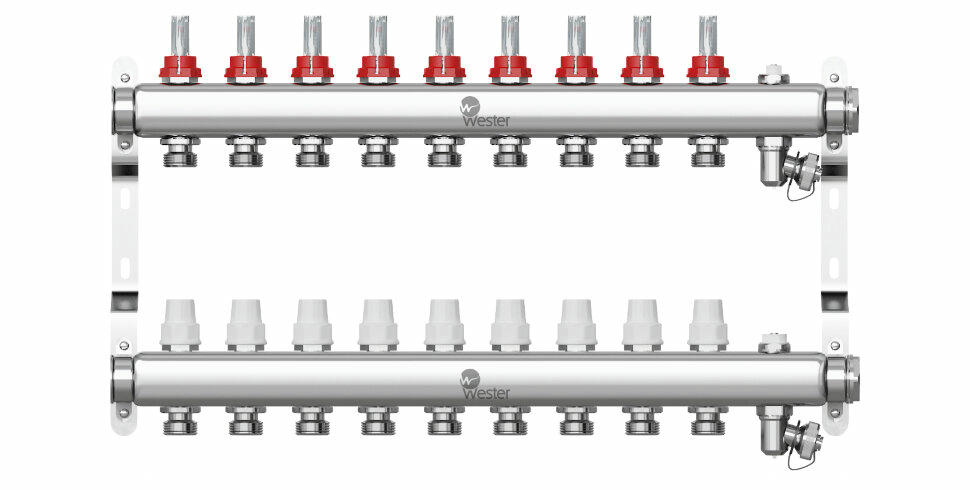 Коллектор Wester 902 предназначен для оптимизации и контроля распределения теплоносителя в ситемах радиаторного отопления и подогрева полов.