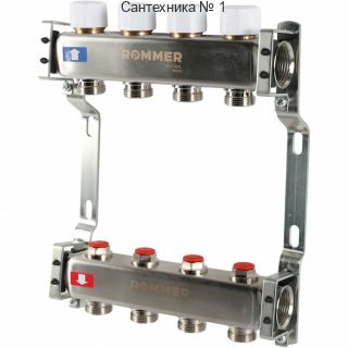 Коллектор из нержавеющей стали без расходомеров 4 выхода ROMMER