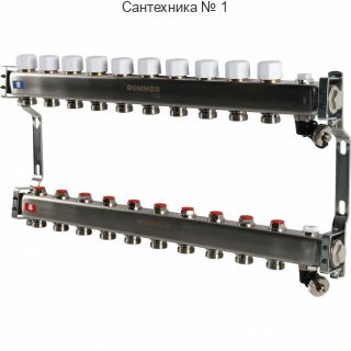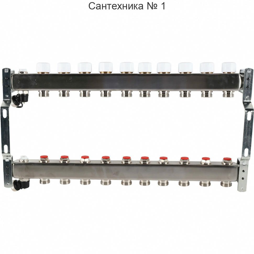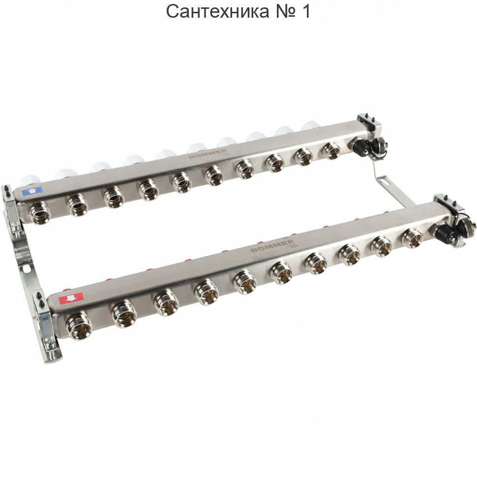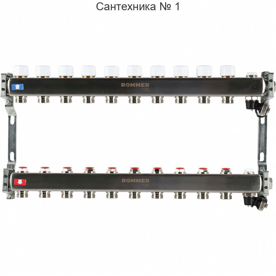 Коллектор из нержавеющей стали без расходомеров, с клапаном выпуска воздуха и сливом 10 выходов ROMMER
