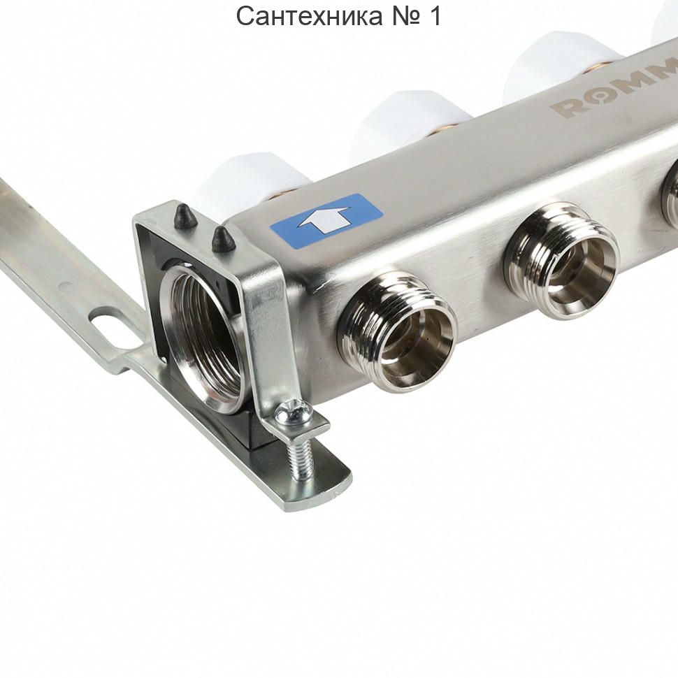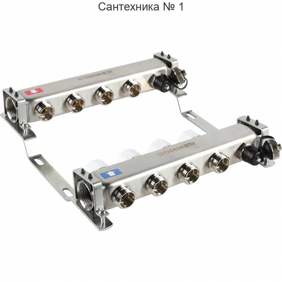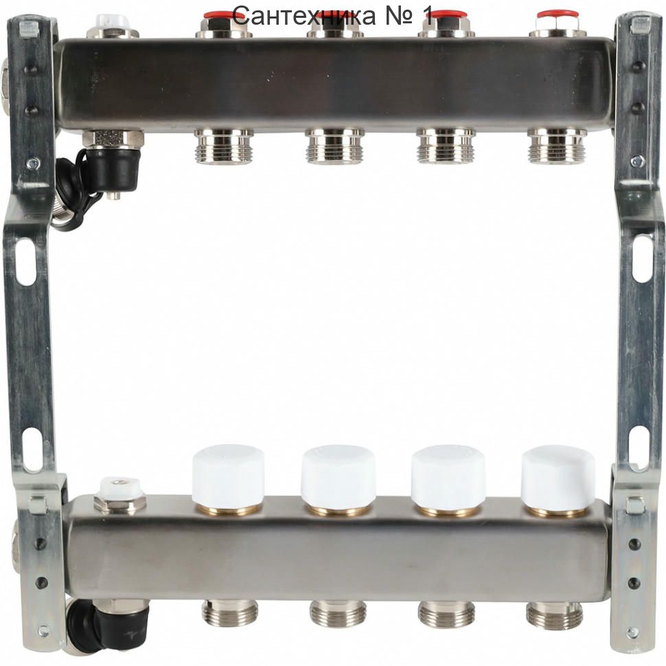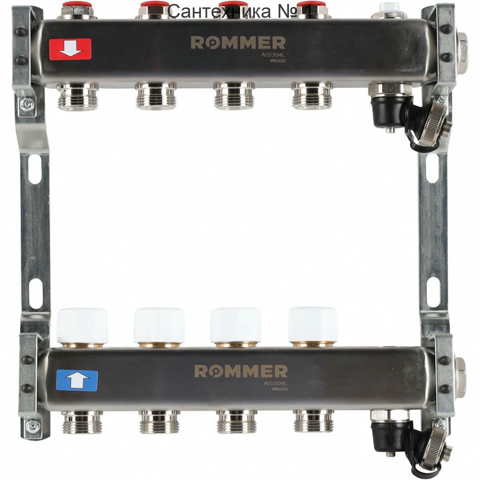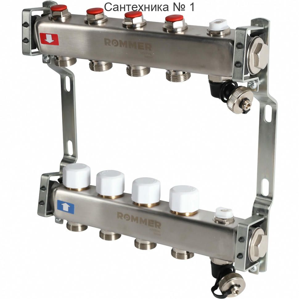 Коллектор из нержавеющей стали без расходомеров, с клапаном выпуска воздуха и сливом 4 выхода ROMMER
