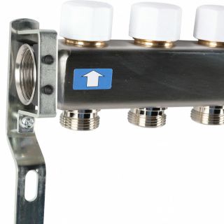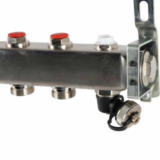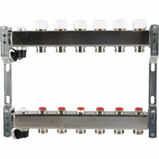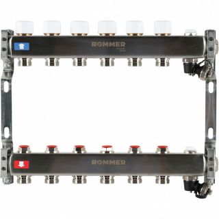 Коллектор из нержавеющей стали без расходомеров, с клапаном выпуска воздуха и сливом 6 выходов ROMMER