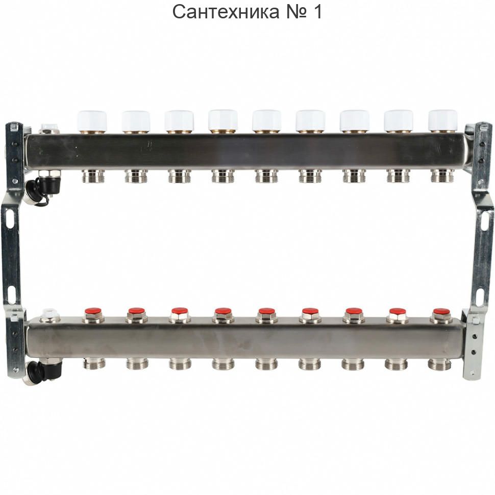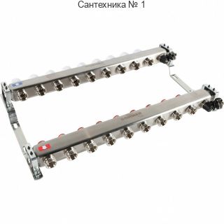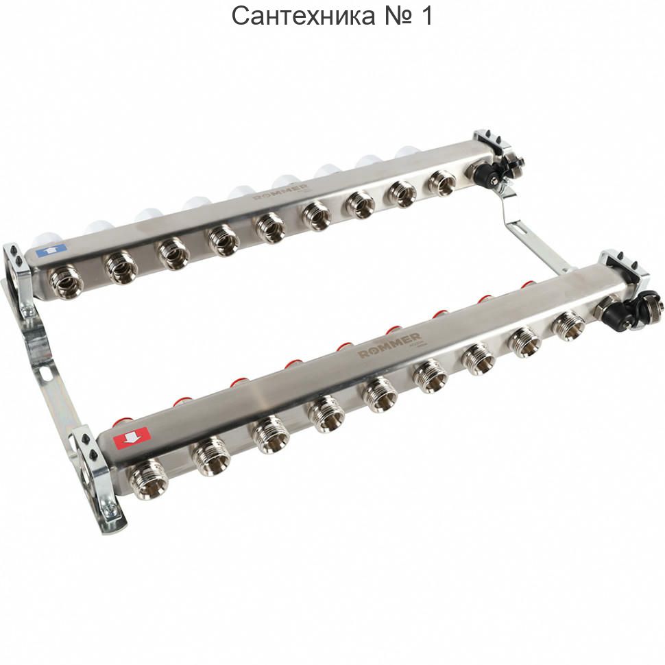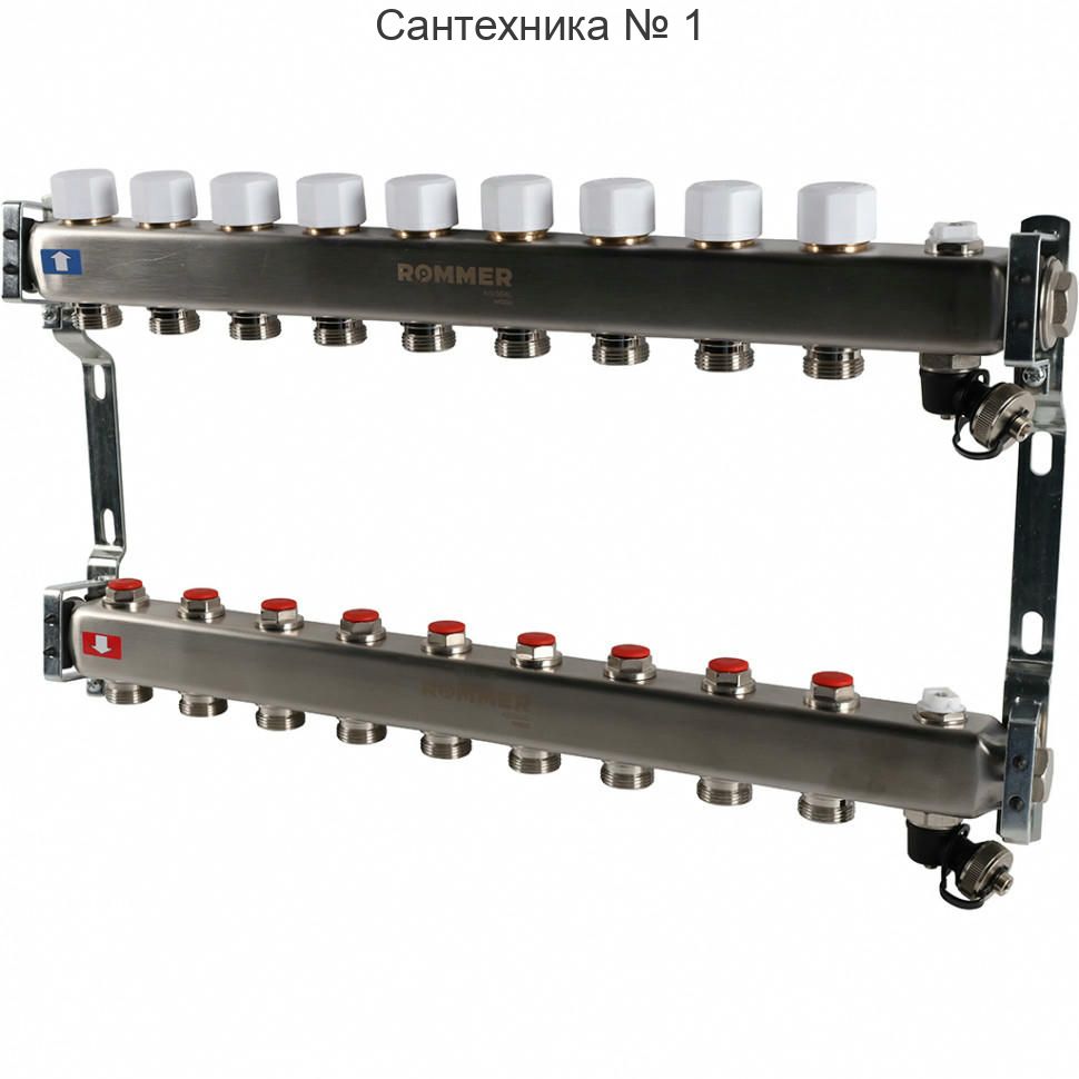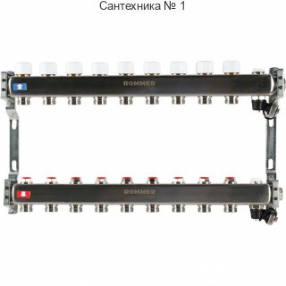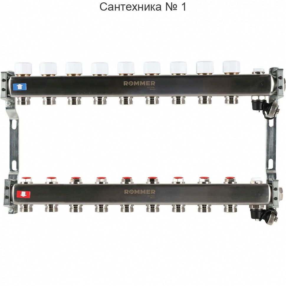 Коллектор из нержавеющей стали без расходомеров, с клапаном выпуска воздуха и сливом 9 выходов ROMMER