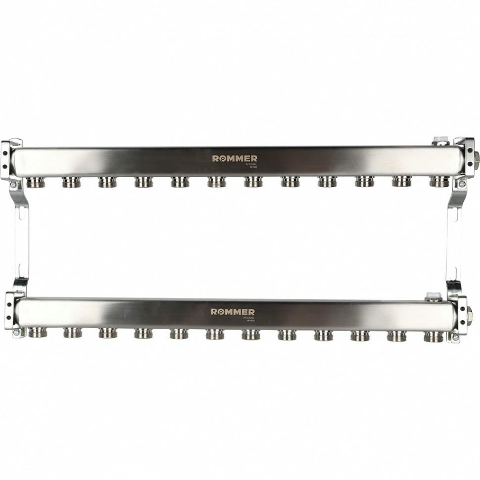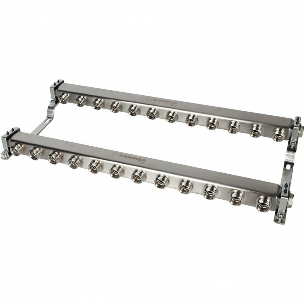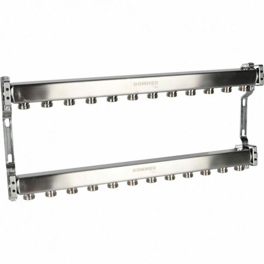 Оцените товар «Коллектор из нержавеющей стали для радиаторной разводки 12 выходов ROMMER»