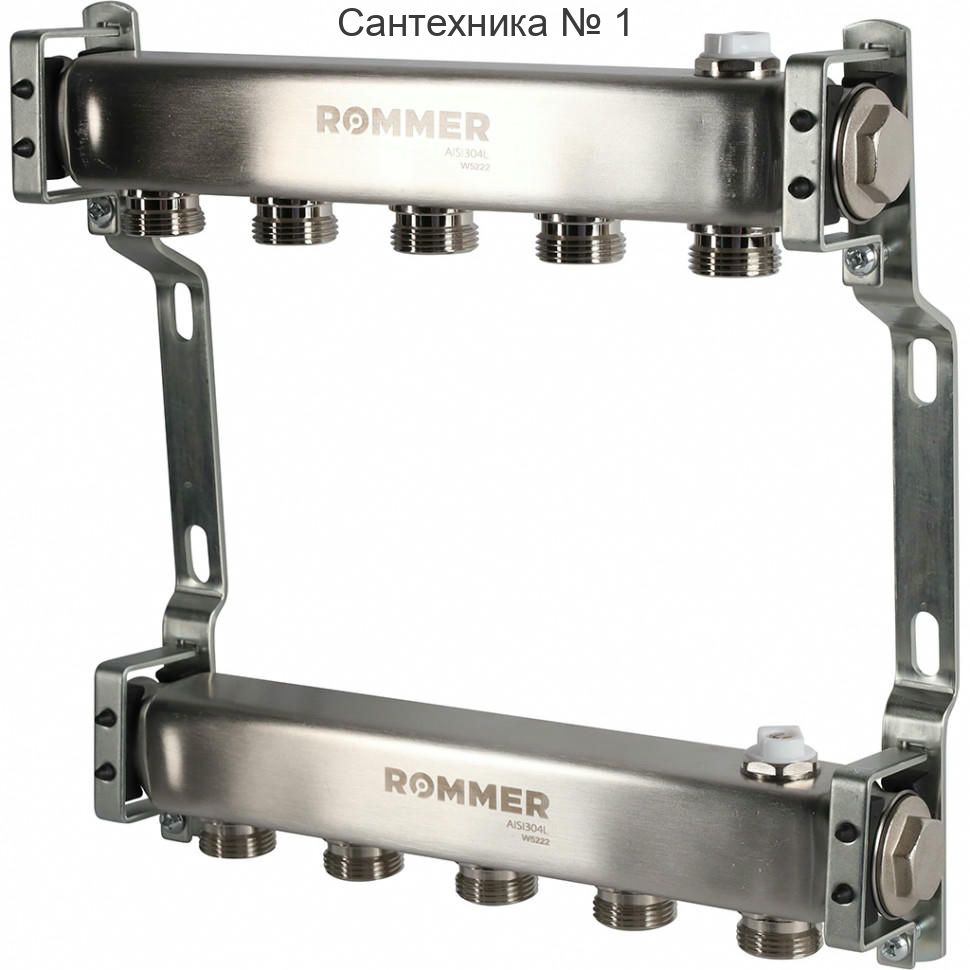 Коллектор из нержавеющей стали для радиаторной разводки 5 выходов ROMMER