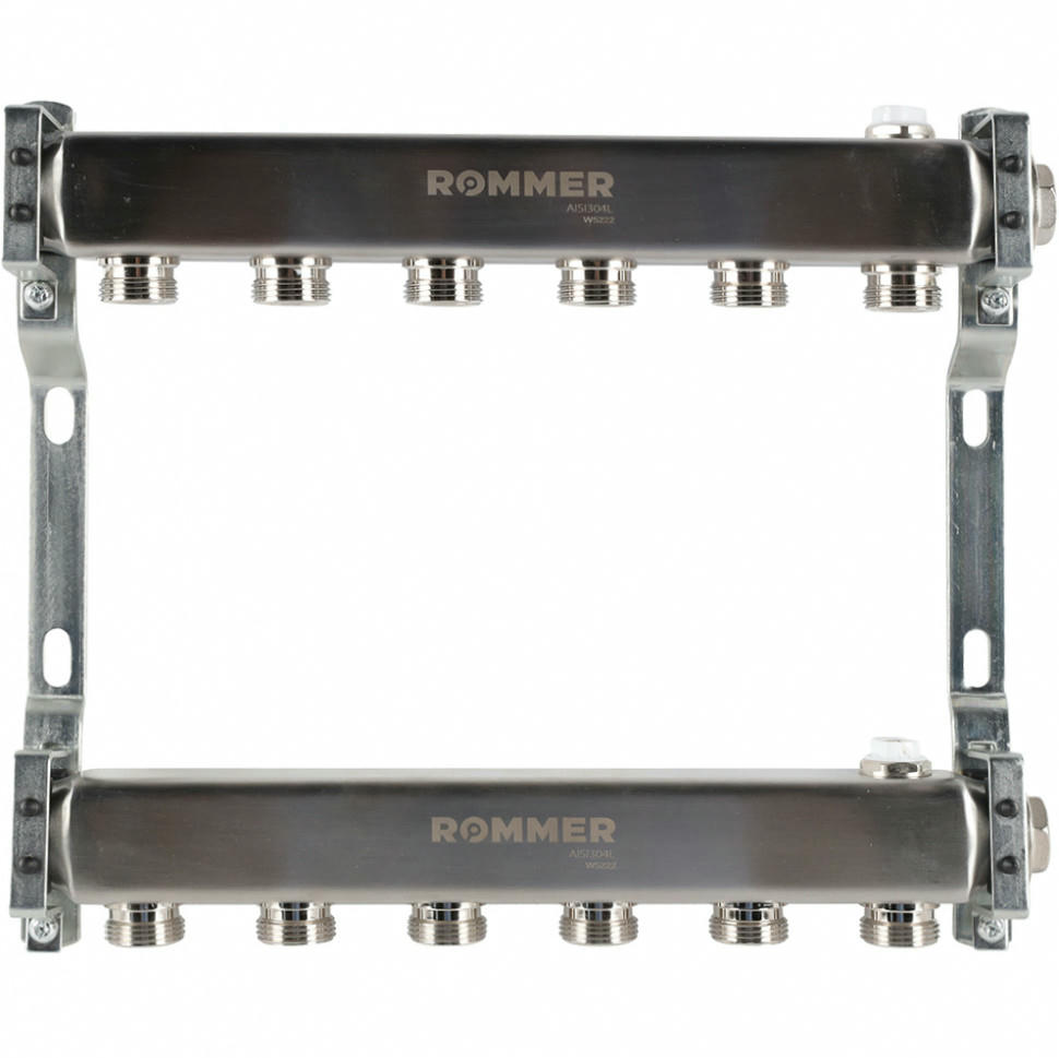 Коллектор из нержавеющей стали для радиаторной разводки 6 выходов ROMMER