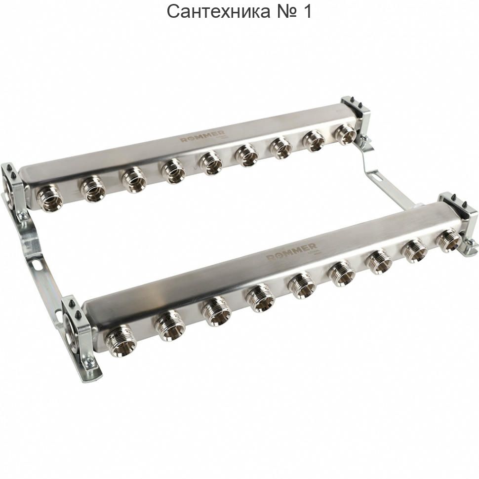 Коллектор из нержавеющей стали для радиаторной разводки 9 выходов ROMMER