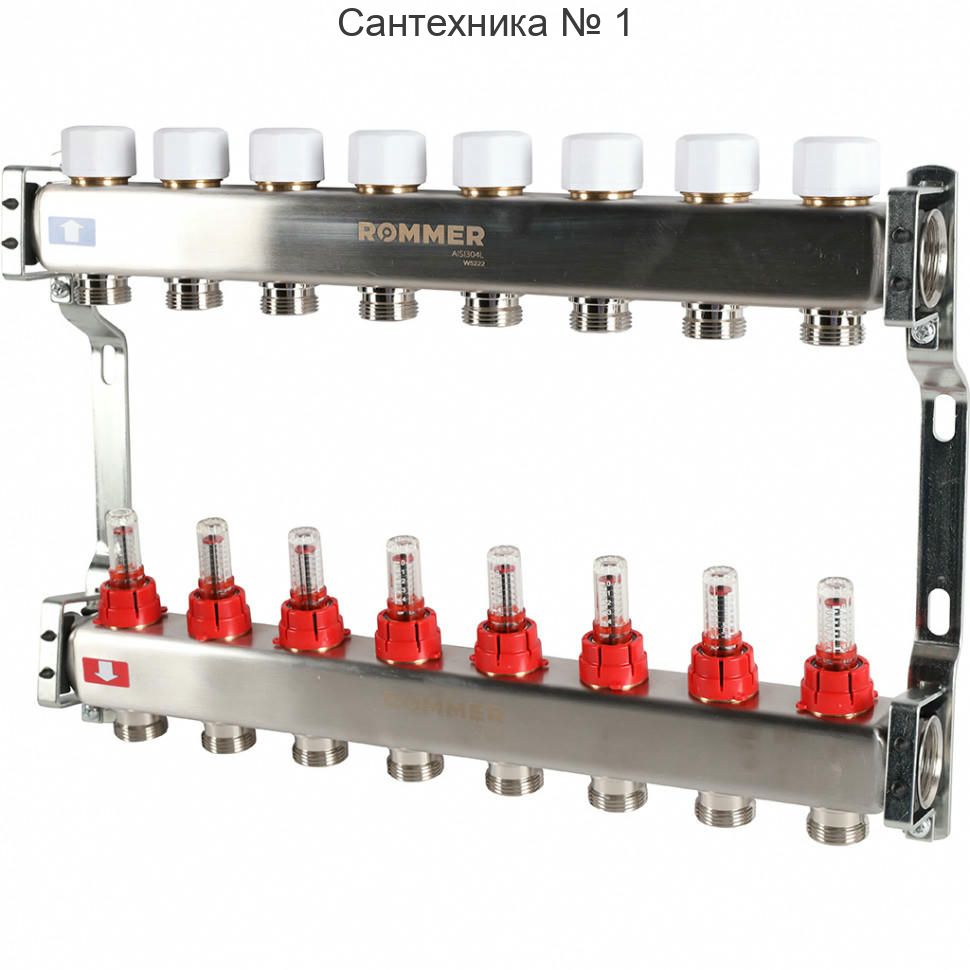 Коллектор из нержавеющей стали с расходомерами 8 выходов ROMMER