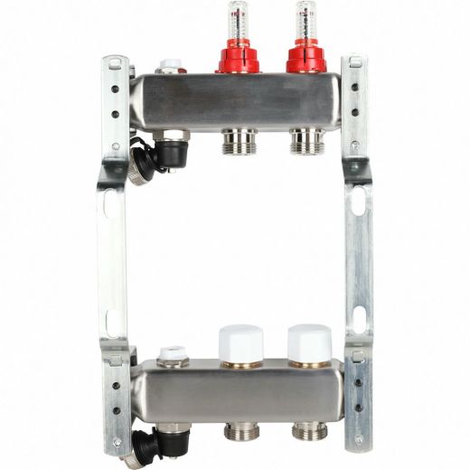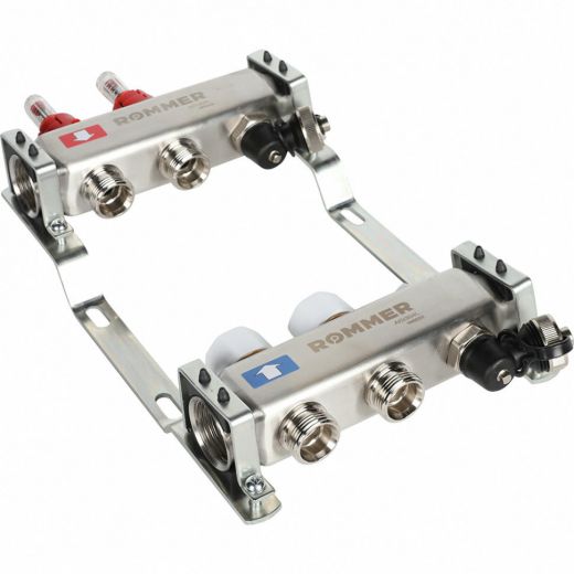Оцените товар «Коллектор из нержавеющей стали с расходомерами, с клапаном выпуска воздуха и сливом 2 выхода ROMMER»