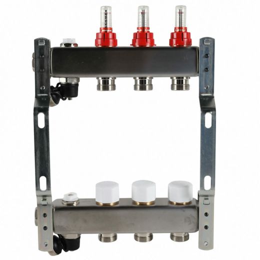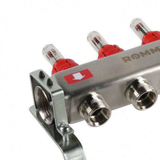 Оцените товар «Коллектор из нержавеющей стали с расходомерами, с клапаном выпуска воздуха и сливом 3 выхода ROMMER»