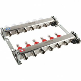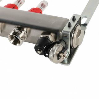 Коллектор из нержавеющей стали с расходомерами, с клапаном выпуска воздуха и сливом 6 выходов ROMMER