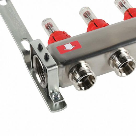 Коллектор из нержавеющей стали с расходомерами, с клапаном выпуска воздуха и сливом 6 выходов ROMMER