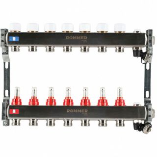 Коллектор из нержавеющей стали с расходомерами, с клапаном выпуска воздуха и сливом 7 выходов ROMMER